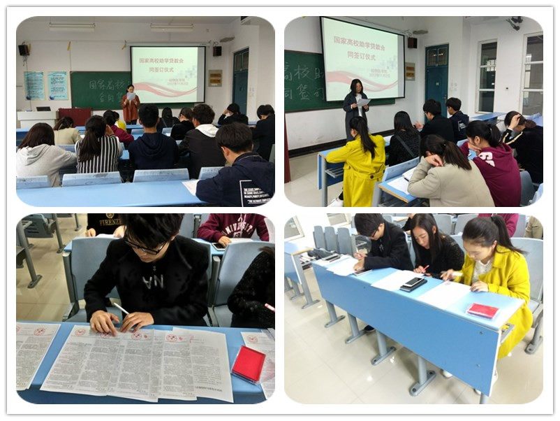 会上,首先由樊老师带领大家对贷款合同以及承诺书进行统一解读,确保每一位贷款学生对合同内容以及承诺书内容清楚明白,过程中尤其对合同的违约处理以及如何还款等内容进行了重点解读,就贷款使用途径、还款时间、还款途径、违约后果等进行了详细的解说,同学们在对合同和承诺书内容充分理解的基础上,签字并按下了手印,完成了高校助学贷款合同的签订过程。接着樊老师重点强调了诚信贷款的重要性,告诫同学们珍惜资助机会,激励同学们一定要努力学习,以实际行动来回报国家和社会。