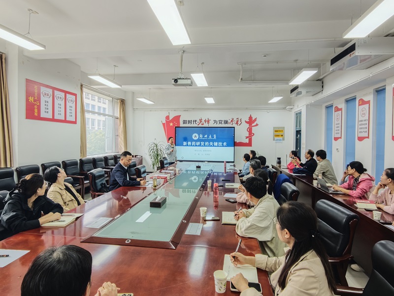 接下来,吴教授进行“新兽药研发的关键技术”名师讲坛活动,吴教授结合其多年在新兽药研发领域的深厚学术积累与丰富实践经验,系统阐述了新兽药研发的技术主线与创新方向。她以“大环内酯类药物设计”、“麻杏石甘汤纳米自组装机制”及“解热类新兽药研发”等前沿课题为例,深入剖析了新兽药从基础研究到产业化应用的全链条关键环节。吴教授特别强调,科研团队应注重科技奖项的系统性培育,有效整合专利、论文与新兽药证书等成果,积极对标省级以上科技进步奖申报标准,全面提升学科核心竞争力。参会教师围绕新兽药立项策略与研发流程等关键问题,与吴教授展开热烈深入的研讨。