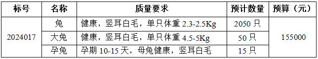 本次实验用兔采购采用预算总额控制的形式,报价不得超过预算金额,数量以实际使用为准。