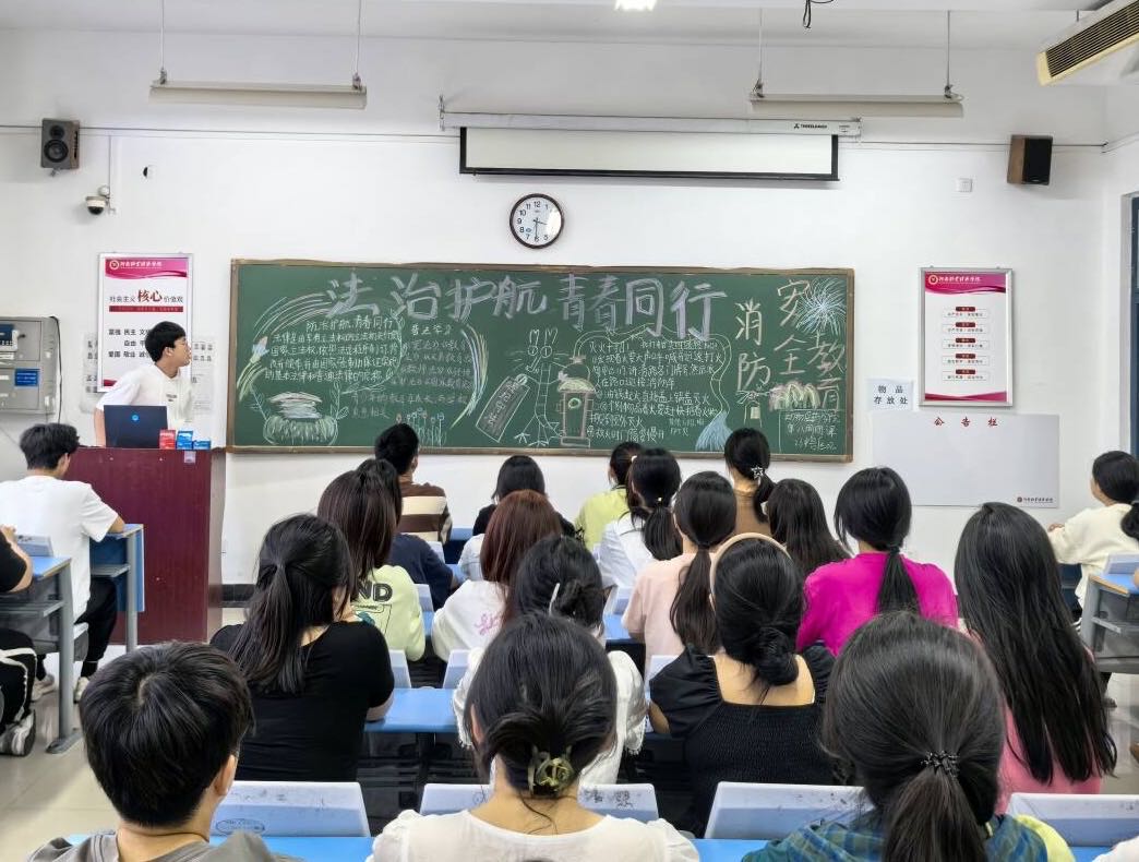 本次团课分为两个部分。在团课开始前,各班积极搜集相关资料,绘制黑板报,合理分配工作,为团课的成功开展做了充分准备。第一个部分以“法治护航,青春同行”为主题。团课伊始,主持人通过PPT演示文稿向同学们介绍了我国部分法律法规,如:《中华人民共和国教育法》、《中华人民共和国未成年人保护法》、《中华人民共和国预防未成年人犯罪法》等,使同学们学会用法律维护自己的权益,从而达到法治教育的目的,并呼吁同学们要做到知法守法、自觉抵制不良行为,以遵纪守法为荣、以违法乱纪为耻,用实际行动弘扬法治精神,做一名知法守法、诚信友善的学生。随后,团课主持人从“什么是校园欺凌”、“校园欺凌的危害”、“如何预防校园欺凌”三方面进行了展开论述,通过列举校园暴力的真实案例,让同学们认识到校园欺凌行为不仅会受到社会舆论和道德谴责,造成严重后果的还要承担相应的法律责任。同时主持人也强调了学院对校园暴力和学生欺凌问题的零容忍态度,并呼吁全体学生共同营造一个和谐、安全的校园环境。第二个部分以“消防安全”为主题。主持人介绍到:我国高校数量多,人员密集,致灾因素复杂,历来是消防安全管理的重点单位。为让青年团员更加重视校园消防安全,我院组织青年团员开展了一系列消防安全知识培训,提升师生消防安全意识和应急技能,增强知险、避险和自救能力,有效防范火灾发生,从而共同创建平安校园。