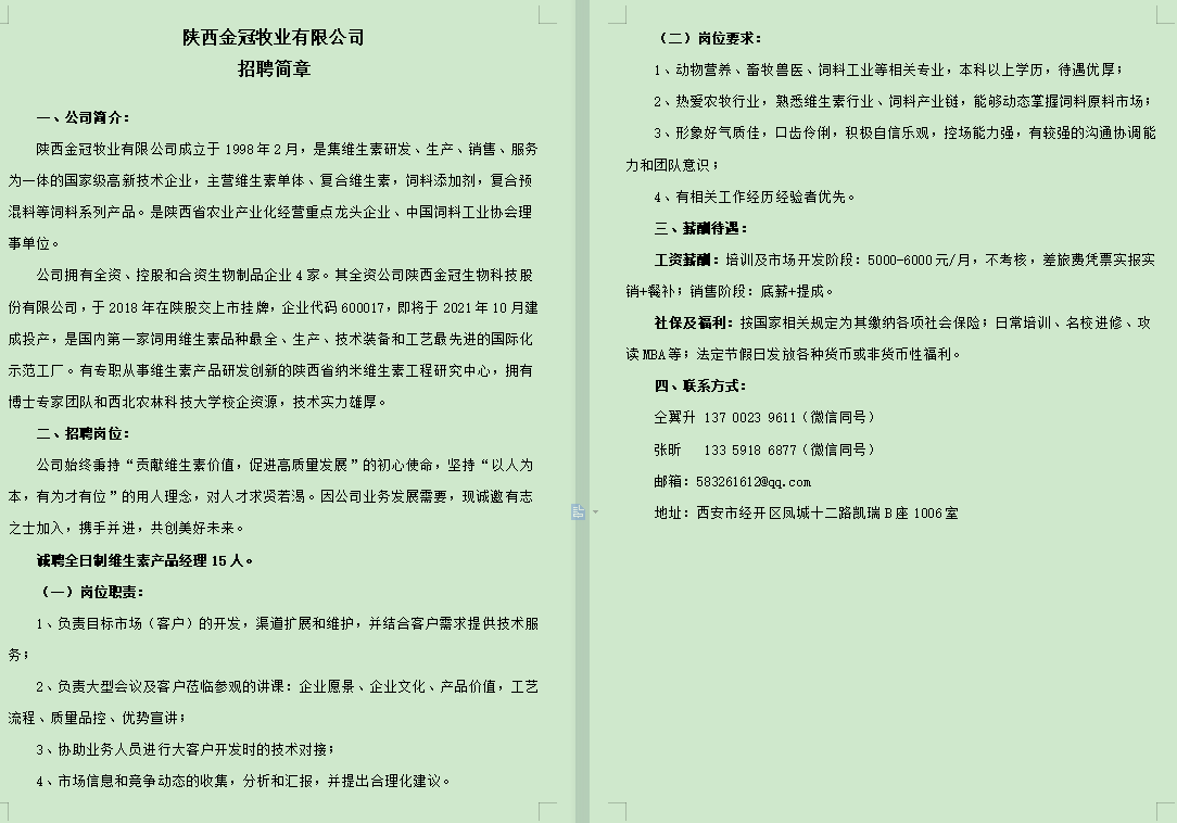 陕西金冠牧业有限公司招聘简章