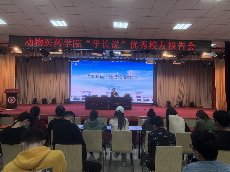 11月7日15:00,我院于大学生活动中心四楼举行了“学长说”优秀校友报告会,学院特邀郑州格外文化传播有限公司董事长肖林、河南牧翔动物药业有限公司市场总监曲玖燕、北京世宠生物科技有限公司总经理张伟作为优秀校友代表担任主讲人,学院团委副书记聂丹和240余名学生共同聆听了此次报告。